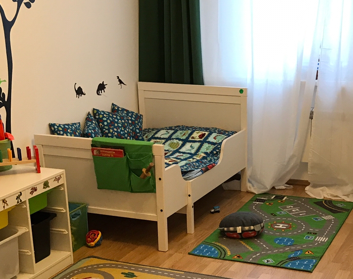 Кровать, коврики, кармашек, шкаф для ишрушек, коробки для игрушек, шторы)