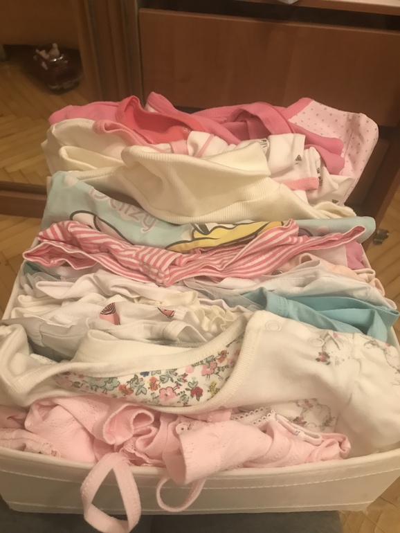 у нас прозрачные икеевские контейнеры. Все видно и удобно очень. Складываю вещи не друг на друга а в ряд(по японской системе) в них.