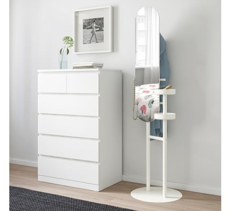 Марин, может лучше шкаф заказать с зеркалом на двери, в шкафу сделать поперечную штангу. Вешало у Икеи конечно смотрится хорошо, но когда там одна легкая блузка и шарфик весит, а шкаф будет более функциональный, зеркало на фасаде придаст легкость, а кроме штанги внутри еще и полки можно сделать, да и по цене думаю дешевле.