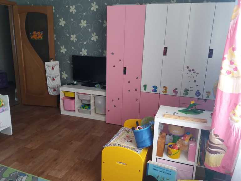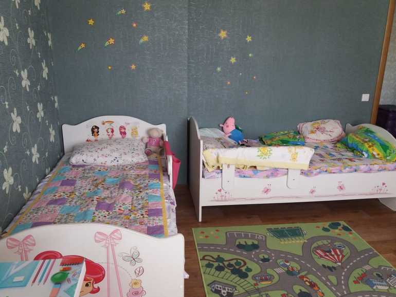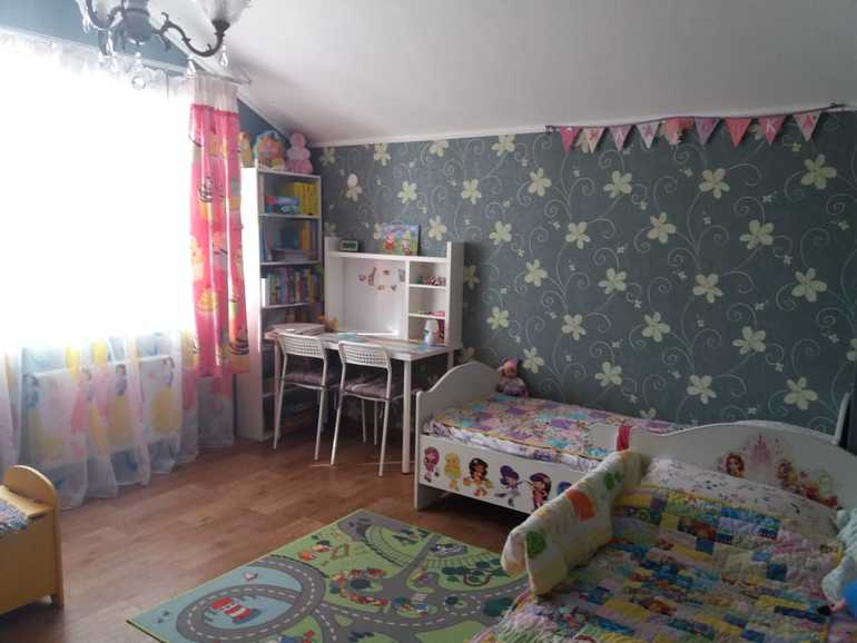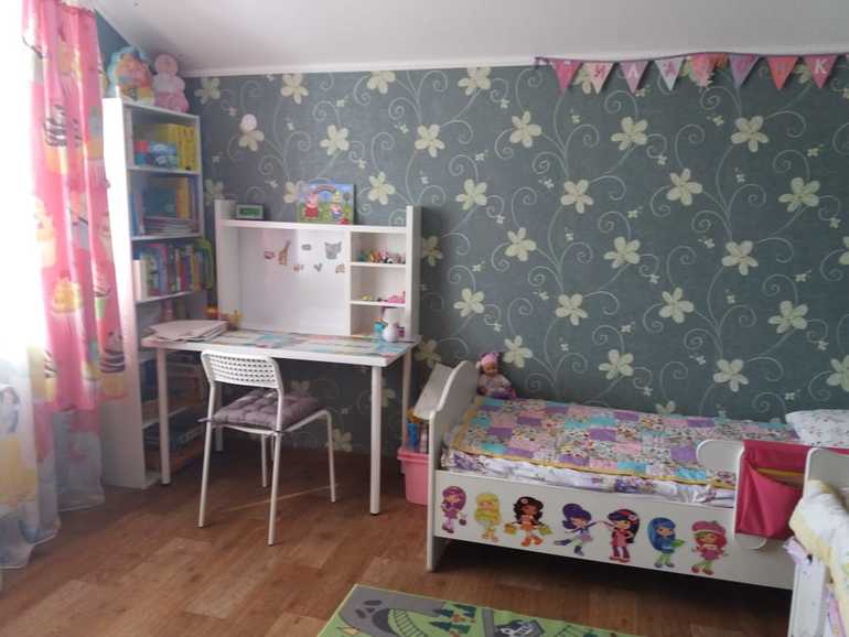Изначально комната не предпологалась как детская. Только недавно приняли решения ,что девочкам нужна большая комната.Обои будем менять только со след.м ремонтом.