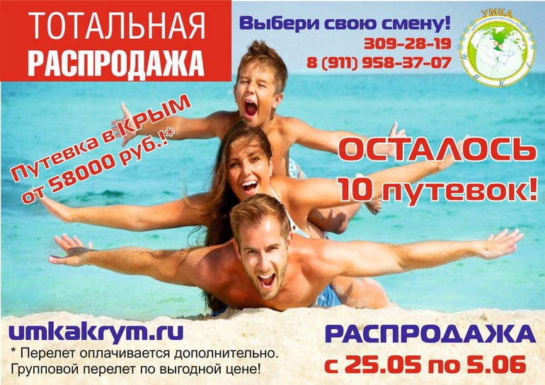 ТОТАЛЬНАЯ распродажа путевок в КРЫМ! От 58000 руб. на семью!