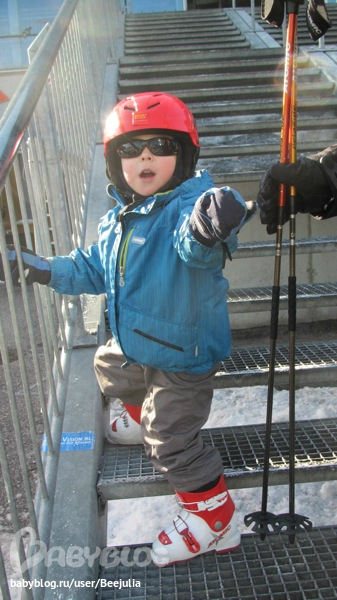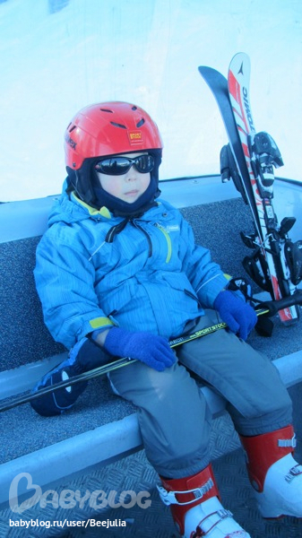 Я не стала Степку ставить на лыжи в Москве. Объясню свою позицию. Меня муж учил кататься на лыжах в Москве и кроме отвращения я ничего не испытовала и только оказавшись в Австрии я поняла в чем кайф! Научилась кататься и полюбила этот спорт! И я решила, что своего ребенка буду ставить на лыжах только там. Он окунается в атмосферу катания: вокруг горы, солнце. белый снег. Все в шлемах, в лыжнах ботинках, с лыжами на плечах идут к подъемнику: взрослые, мужчины, женщины, дети, старики - все катаются! И в такой атмосфере просто невозможно не начать кататься и не влюбиться в горные лыжи! Конечно я боялась, что Степка не захочет одевать ботинки и откажется от шлема! Но мои опасения оказались напрасными! Ботинки одел с легкостью, они ему так понравились, что в первый день он после катания так и шел в них домой, готов даже спать в них лечь! До сих пор вспоминает свои белые ботинки и спрашивает где они! И шлем одел тоже нормально! Я тоже решила себе взять шлем на прокат, ну чтобы своим примером показывать, чтоб не было так сказать двойных стандартов.