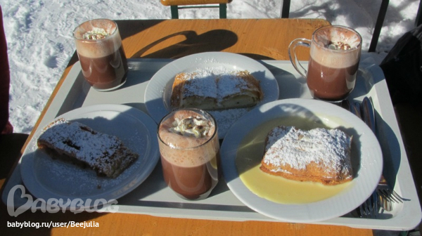 перекус на горе: апфель штрудель мит ванила соус и какаве)))))))))