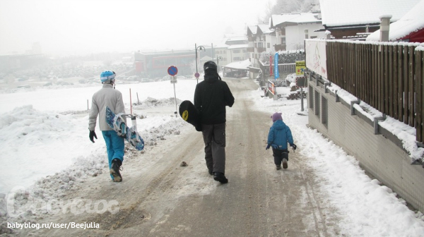 Лыжна школа. Сколько катаюсь на лыжах, так столько у меня умиления вызывают карапузы на горных лыжах, с соской и уже с горы катаются и мне всегда казалось что берут ну чуть ли не с рождения детей)))) так вот в Кальтенбахе найти школу для детей 3х лет оказалось очень сложно, можно сказать невозможно. Своих они обучают только с 4х лет на лыжах. Но все-таки мы нашли группу для малышей совсем. В школе пингвиненка ВОВО - http://www.kinder-club.info/home.html Условия были такие: ребенок занимается только 1 час и обязательно в присутствии одного из родителей. А я то в Москве уже губу раскатала как мы Степу на 4 часа оставим в школе с обедом, а сама с мужем буду кататься))))) Нет, нет и еще раз нет. Школы у них для детей от 4х лет. Но мы согласились и на такой вариант, но и он не прошел. В первый день в школе было 4 детей, двое наших и двое немцев. Инструктор австриячка разговаривала с детьми на смеси немецкого и английчкого, но это совершенно не было проблемой для наших малышей. Уже не знаю понимали ли они что она говорит, но так как все движения показывали, то они все могли повторить. Но на второй день занятия для малышей не продолжили, так как согласились только два ребенка, но из-за двух они не стали оставлять эти занятия. И Степу учил муж кататься. Хотя в школе было прикольно. Первое занятие они в основном провели без лыж ходили через перекладины, выполняли упражнения и в конце одели только одну лыжу.