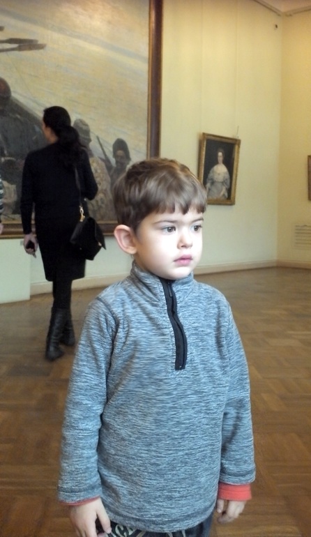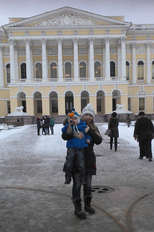 Далее по программе был Русский музей. В очереди практически не стояли, фотоаппарат был с нами, но нашему сыну были категорически неинтересны картины. Я честно пыталась рассказать хоть что-то про них, объяснить, что нарисовано, но сын, не останавливаясь, тянул меня через все залы дальше и дальше. Посмотрев на мои мучения, старушка-смотрительница посоветовала нам залы древнерусского искусства. Там так много всяких шкатулочек, коробочек, в которые мы пытались заглянуть. Наряды сыну не приглянулись, но он пообещал купить мне кокошник, чтобы мама стала красивая)))) А больше всего нам понравился деревянный кит с деревней на спине из сказки "Конек-Горбунок", мы долго ходили вокруг и рассматривали маленькие избы, елки, людей... Вся "экскурсия" продолжалась 45 минут и закончилась моим натруженным горлом (обычно у меня болят после музея ноги, так что непривычное ощущение)))