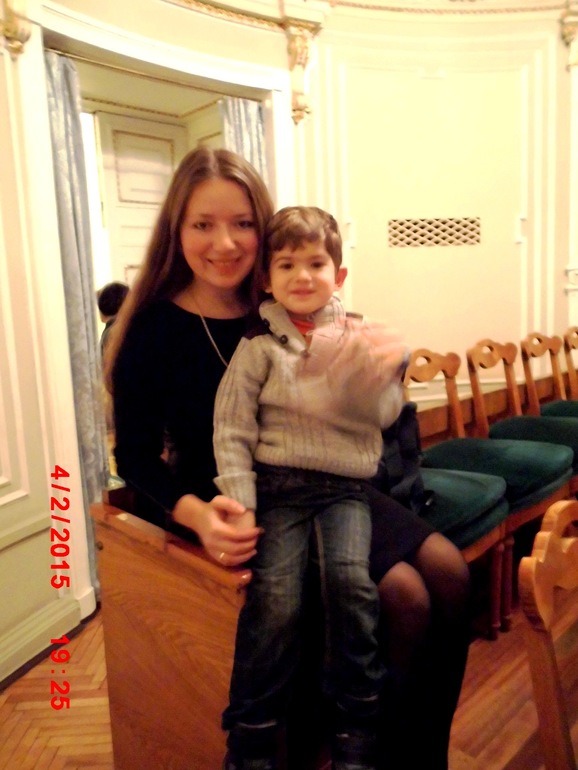 Но принцев с принцессами мы в Эрмитаже так и не встретили. Вечером мы отправились в Мариинский театр на "Бахчисарайский фонтан". Билеты оставались только в царской ложе на 5м ряду) Чтобы Науму было лучше видно, женщина-билетер дала ему целых пять подставочек на сиденье))) Все первые 2 действия я объясняла Науму на ушко, что происходит на сцене (адаптированно для 3х лет, с принцами, принцессами и их врагами))) Музыка Асафьева чудесна, балет выше вяческих похвал, отличные декорации (статуи и настоящий фонтан с льющейся водой). Мой однокурссник работает в оркестре, но в этот день, к сожалению, я его не увидела.