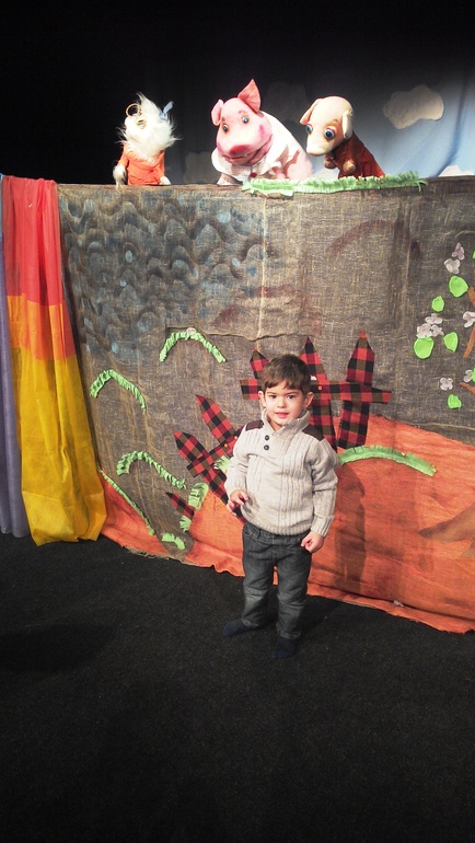 Сперва запланировали кукольные театры. Выбор пал во-первых на маленький театрик "Мимигранты", который был расположен прямо на улице, где мы жили. Спектакли расчитаны на детей от 2 лет и проходят по воскресеньям. Зал выглядит как варьете: родители покупают кофе для себя и вкусности для детей и садятся за столики. Дети во время спектакля могут сидеть впереди на матах. После представления можно поговрить с куклами, погладить их и сфотографироваться на их фоне. Науму очень понравилось, рекомендуем всем!