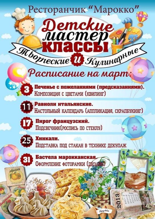 • МОСКВАПриглашаю поучаствовать в детских кулинарных и творческих мастер-классах в ресторанчики творческие "Марокко".