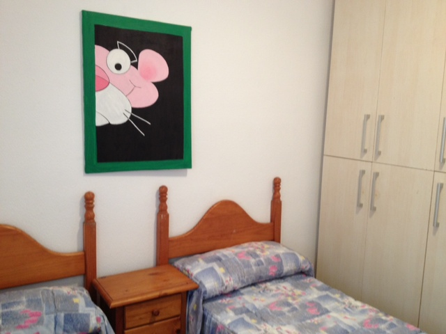 Недвижимость в ИспанииАпартаменты в Санта Пола (15 км от Аликанте), 2 спальни, салон и кухня, 1 ванная с ванной и еще технический дворик. Кондиционер. Бытовая техника. В одной спальне большая кровать с нее море видно, а в другой 2 маленькие. До песчаного пляжа 2 шага, правда по ступенькам. Рядом супермаркет. В доме бассейн и есть парковочное место. Здание новое, вокруг цветы и за домом общее барбекю.