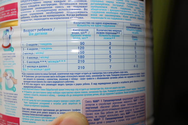 Режим и объем кормленийЗаметила что одна и таже смесь (НАН ГА) купленная в Белоруссии и Польше отличаются разным объемом кормления. Сколько должен кушать за один раз ребенок 4 месяцев?