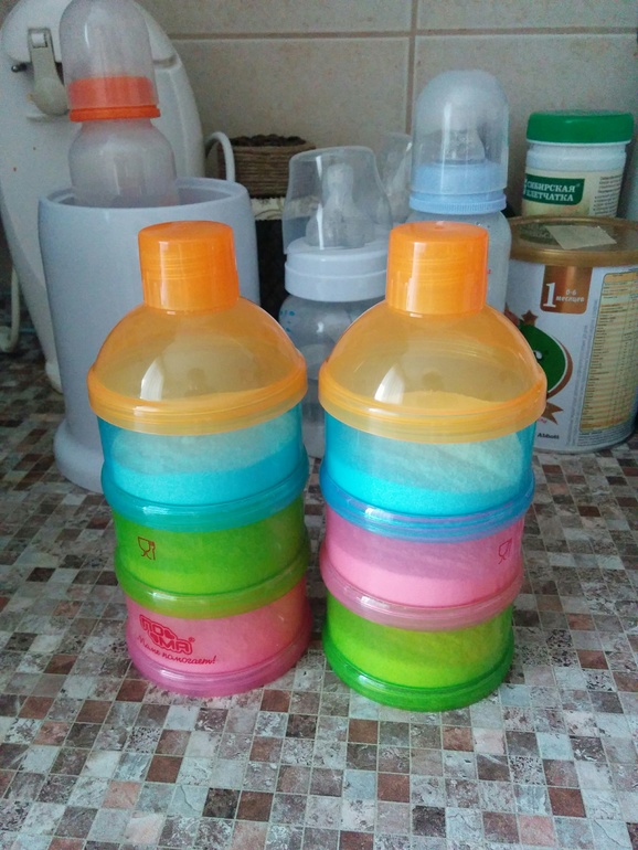 Жить стало проще )) потом меня стало бесить отмерять ложкой каждый раз смесь. Днем еще ничего, а вот после ночных кормлений с утра обнаруживала горку просыпанной смеси на столе ))) Тогда уже занялась выбором дозаторов для смеси. В итоге купила 2 "башенки", в них не остается по углам смесь при высыпании.