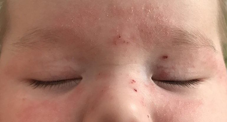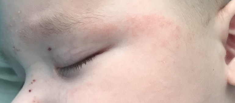 Вот так сейчас, не знаю что и делать, в основном сыпь как очки, вокруг глаз. Он её чешет. Когда спит соответственно все светлеет и почти проходит, но он когда просыпается трёт глаза и когда спать хочет трёт глаза, в итоге все опять красное, расчесанное.