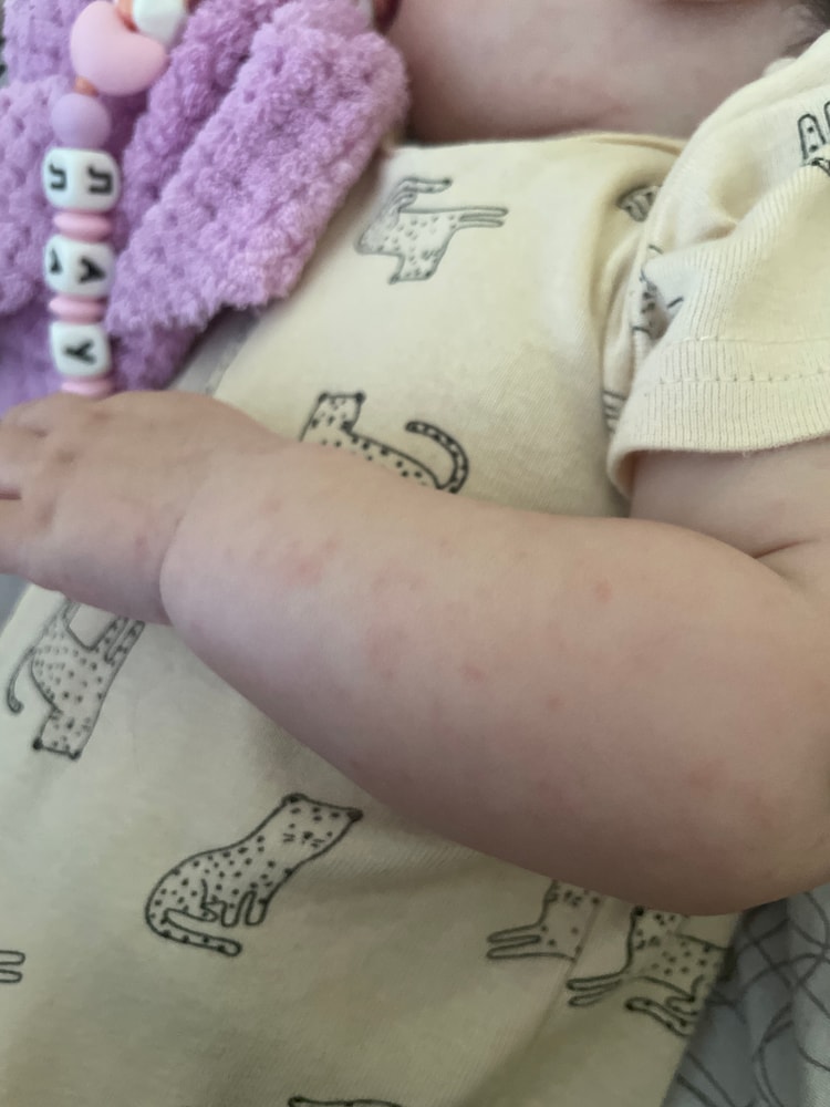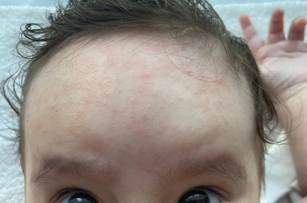 Во вторник как будто стало меньше на лбу, но появилась сыпь на теле (руки/спина/живот)