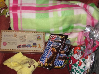Чудесный пледик (это мне), сникерсы (старший в восторге), огромный мешок конфет (в восторге я и супруг), колготочки и игрушка Полине (игрушку еле отобрала у старшего, хотел посмотреть, что внутри...) и море позитива от личного знакомства!