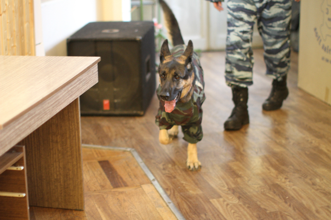 Собачка пробежалась по залу. приятно, что организаторы думают о безопасности наших детей.