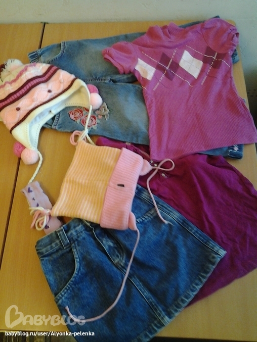 Шапки,джинсы примерно на 3-4 года, кофточки на 5-7лет,юбка джинсовая на 5-6 лет.Около метро Первомайская.