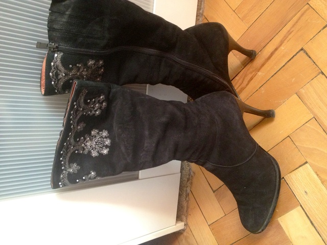 Безвозмездно! То есть даром)))Отдам женские сапоги, в хорошем состоянии, размер 38. Зимние - нат.замша, мех, вышивка, осенние - нат.кожа, подклатка какой-то тоненький материал с ворсом.