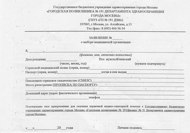 ПоликлиникиВдруг кому надо, чтоб время не терять в учреждении на 7-й Парковой - заполните дома. Образец заявления под катом.