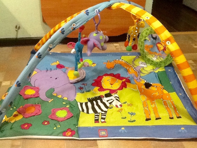 Безвозмездно! То есть даром)))коврик без игрушек,но с зеркалом и музыкальной панелью(нужно вставить батарейки).