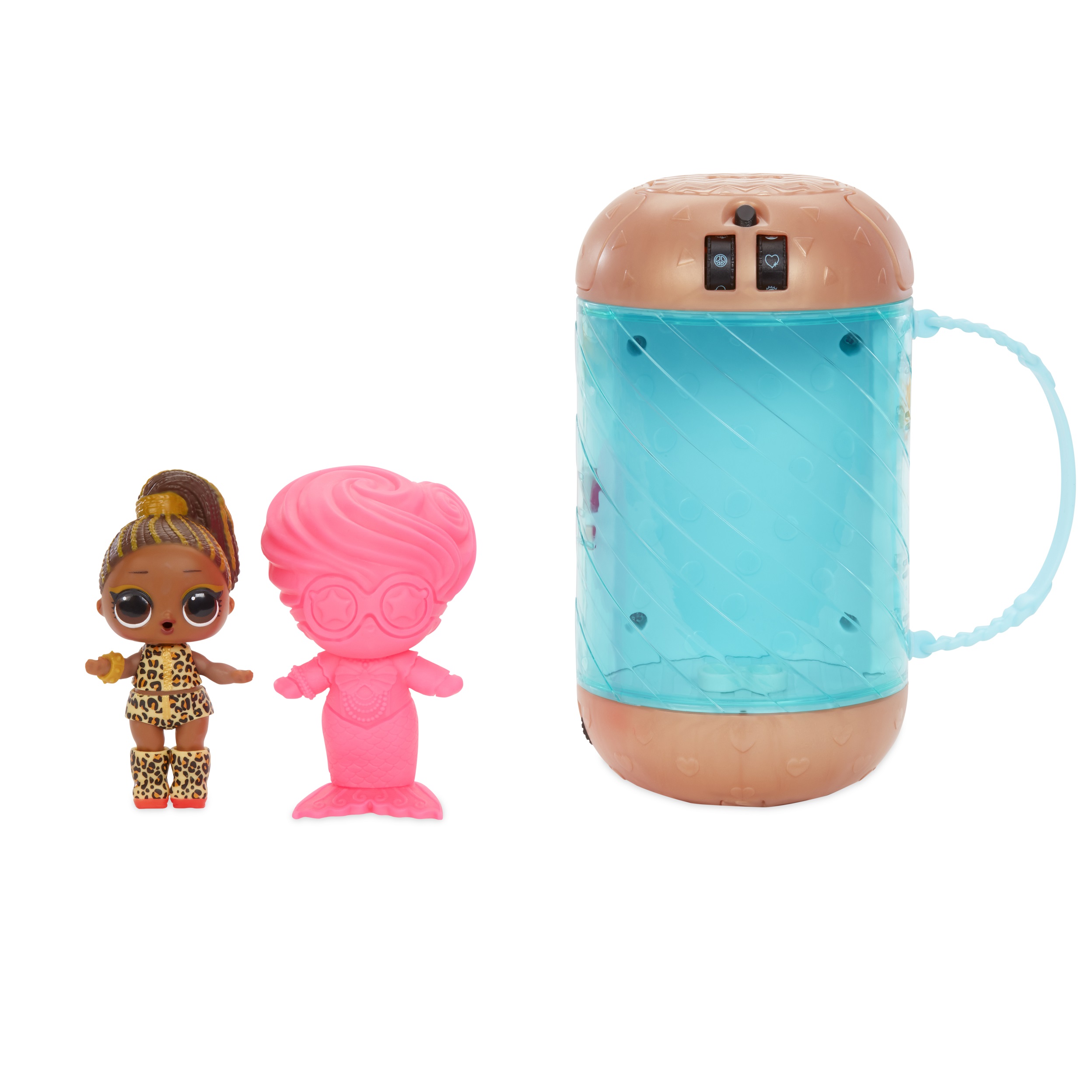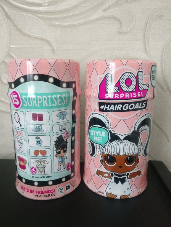 В каждой капсуле скрывается несколько сюрпризов: 2 наряда; бутылочка; секретное сообщение; наклейка; бигуди для волос - 2 шт; подставка; волшебное зеркальце; кукла с расчесываемыми волосами и аксессуар. Капсула превращается в кресло из салона красоты, витрину, подставку для куклы и сумочку. Остерегайтесь подделок. Как выглядит настоящая капсула 5 серии LOL Hairgoals Вы можете увидеть на фотографиях выше. Он произведен компанией MGA Entarteinment и привезен прямиком из США.