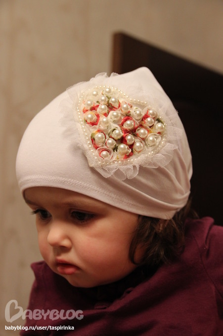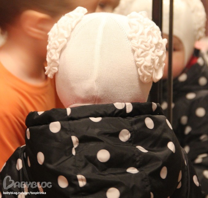 Я тоже сначало так подумала)))) Даже Жене позвонила хотела ее в пристрой кинуть, но она мне объяснила, что шапка очень тянется. Еще раз померили, натянула получше и все село как надо))))