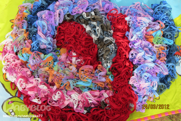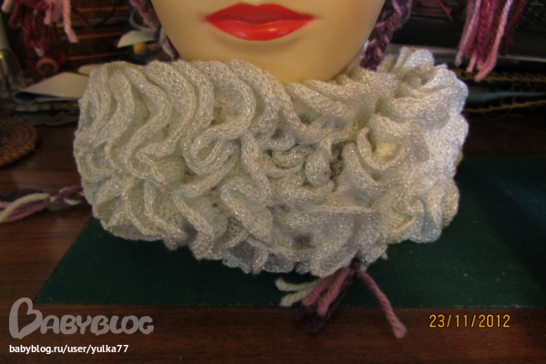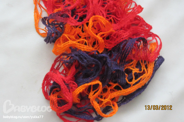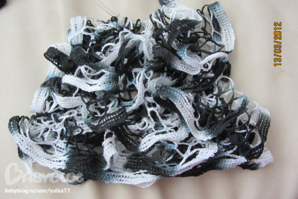 Белый с люрексом, другие цвета без люрекса. 160 см - 70 шах, 80 см (детский вариант) - 40 шах