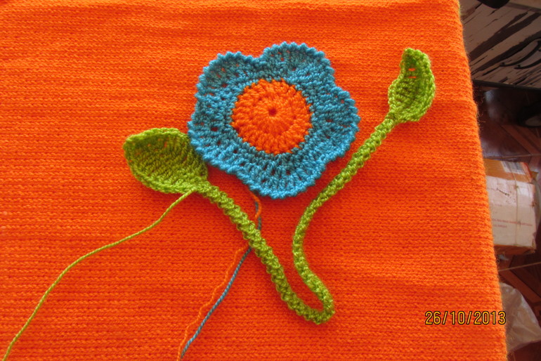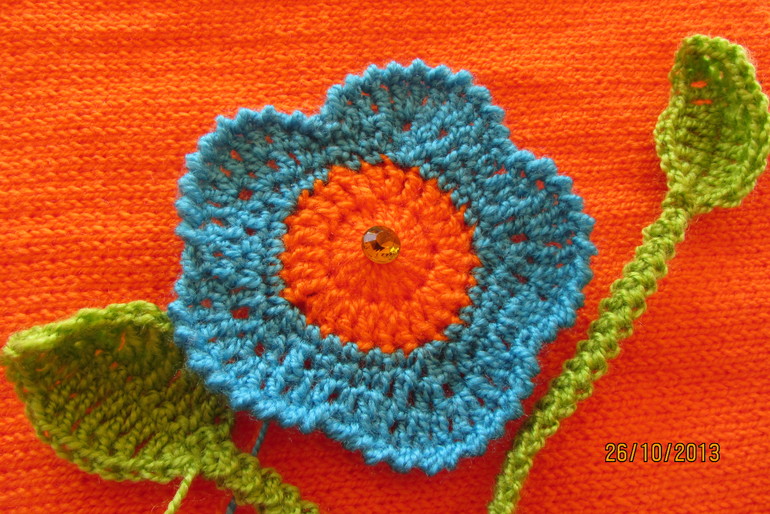 Ваше платьице размером поболее, чем на фото, поэтому кармашек связала другой. Принимаешь? Тогда пришиваю и оно готово