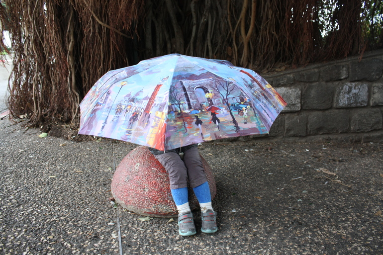 Снова нас нагнал дождь, и мы взяли направление к шестой трассе. Но перед съездом решили подкрепиться, и наш выбор пал на открытый в шабат ресторанчик китайской еды «Тай Чай» в Кирьят-Тивоне. Место аутентичное, цены приятные, еда вкусная. Мы еще и купон в интернете нашли, и нам вручили дополнительную порцию суши. Около каждого стола висела подборка китайских фотографий. Пока нам несли заказ, я стала их рассматривать и одна привлекла внимание некитайской архитектурой.