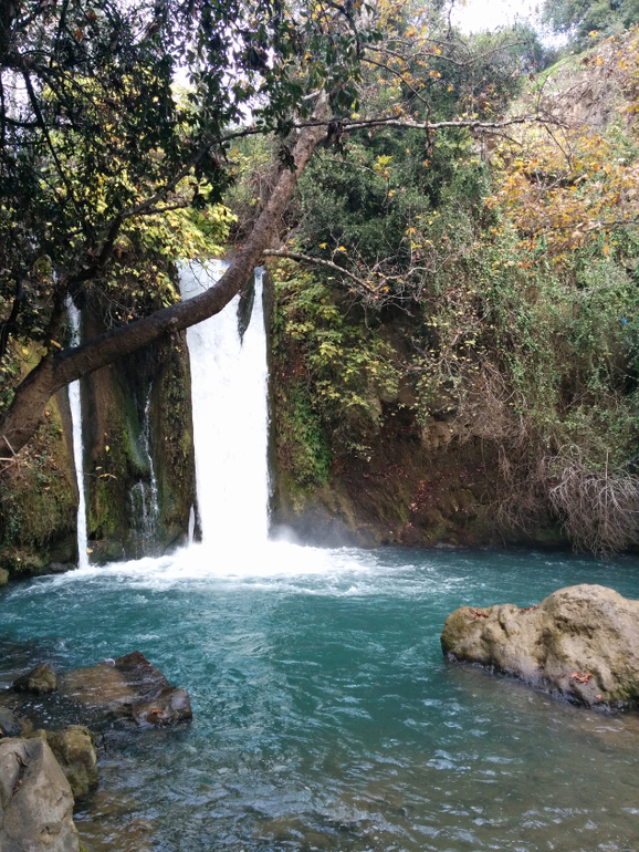 Дальше мы отправились на водопады Баниас. Там есть несколько маршрутов разной длины. И два разных входа - один непосредственно к водопадам, а второй к развалинам древнего города, пещере и месте, откуда начинается ручей Баниас, самый большой из истоков Иордана. По одному билету можно посетить оба места, или добраться по самому длинному маршруту пешком.
