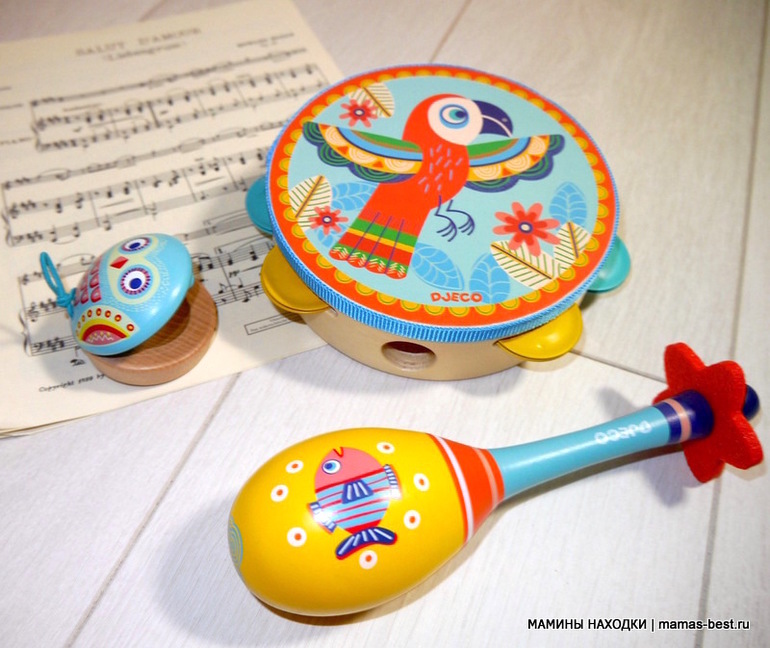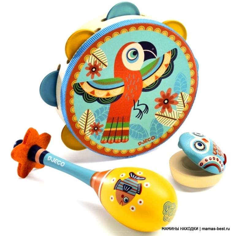 Великолепный набор, состоящий из маракаса, кастаньеты и бубна, с помощью которого ребенок будет развивать свои творческие и музыкальные способности.