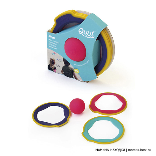 Набор для игр "Ringo"Quut состоит из 3 лёгких колец и 1 контрастного мячика и открывает петанк по-новому для детей любого возраста.