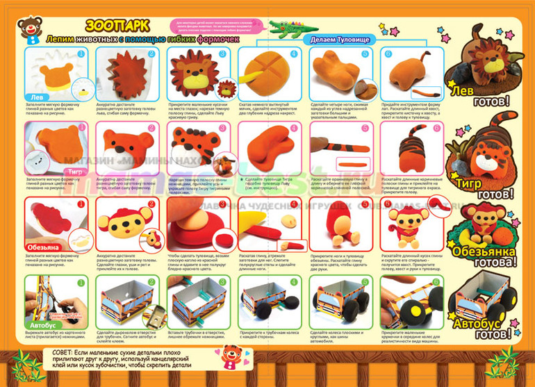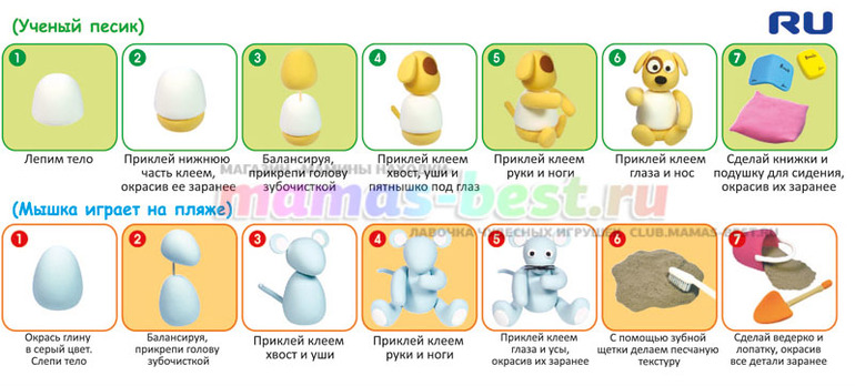 - Во время лепки детали легко соединяются между собой, что позволяет лепить самые разные фигурки.