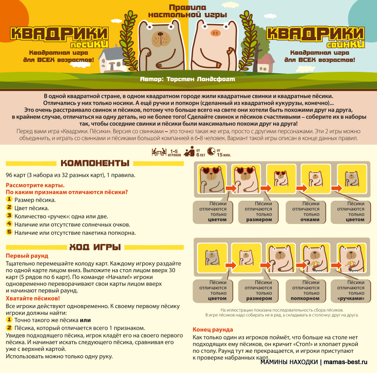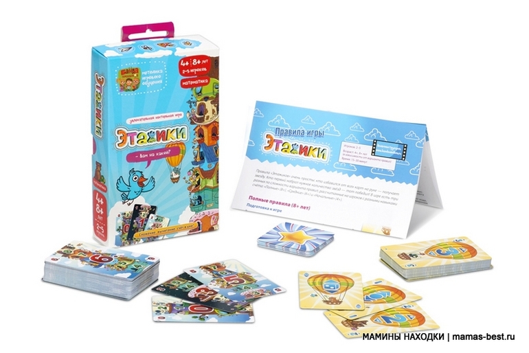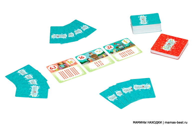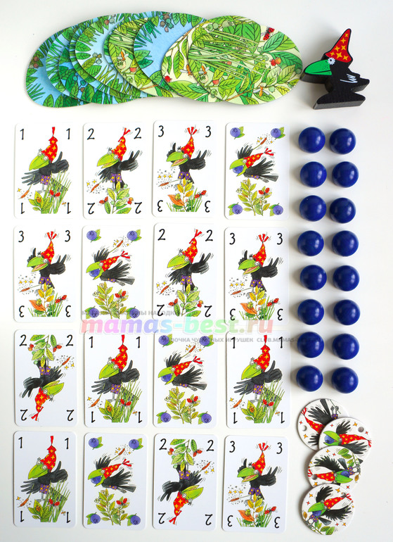 В комплект входит 4 карточки «пейзажи», 10 фишек «созвездия», 10 фишек с цифрами, 55 фигурных фишек с животными (кошки, собачки, зайчики и утки), игральный кубик, подробная инструкция с описанием игр.![]()