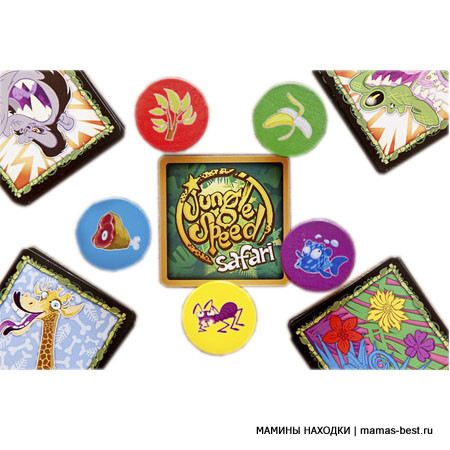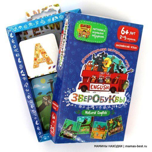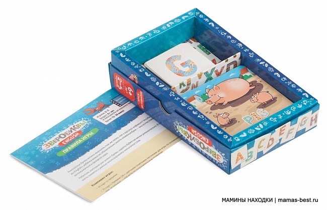 В наборе книжка и 10 магнитов-животных (зебра, жираф, лев, слон и бегемот - каждого по паре). В магнитной книжке две страницы: на одной расположено игровое поле в виде корабля, на другой - откидные карточки с 48 заданиями.