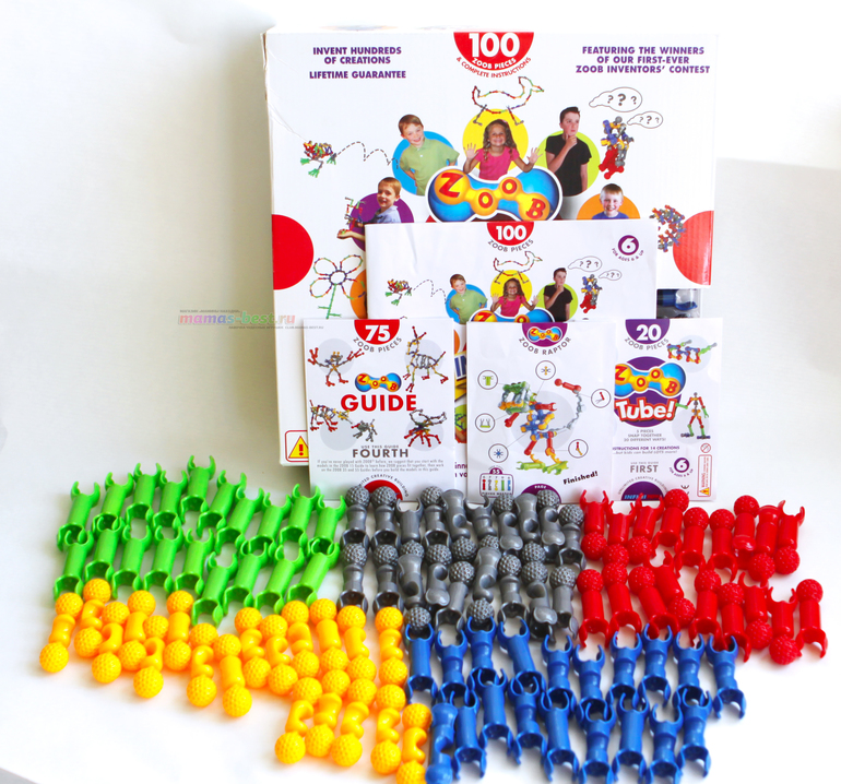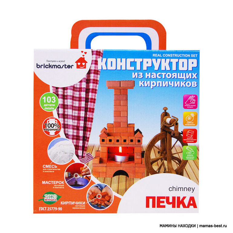 Деревянный корпус, четыре цветных деревянных кубика, книжка с 48-ю заданиями.