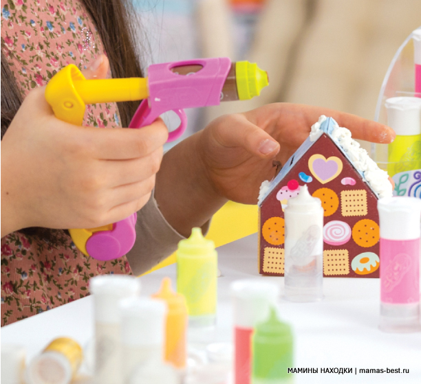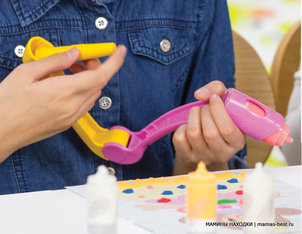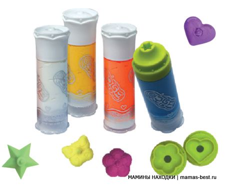 - Пресс-маркер особой конструкции разработан специально для маленьких детских ручек и не требует особых усилий при выдавливании крема из тюбика. Это позволяет детям раннего возраста дать волю фантазии и проявить свой талант декоратора!