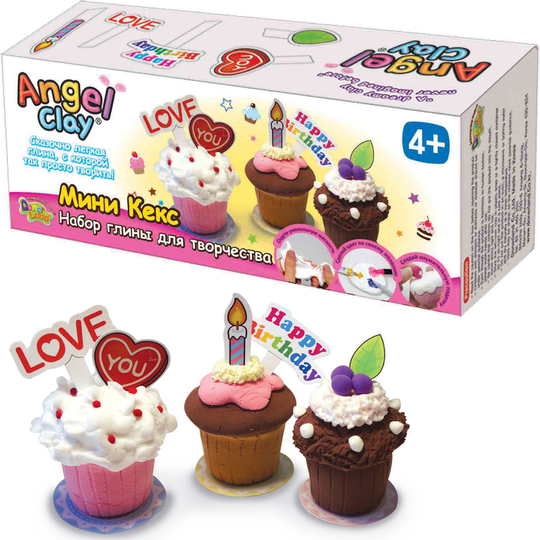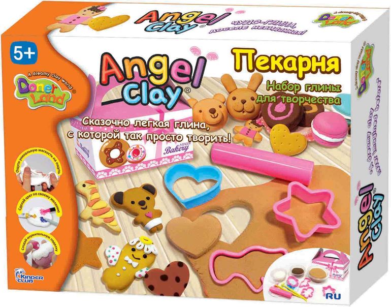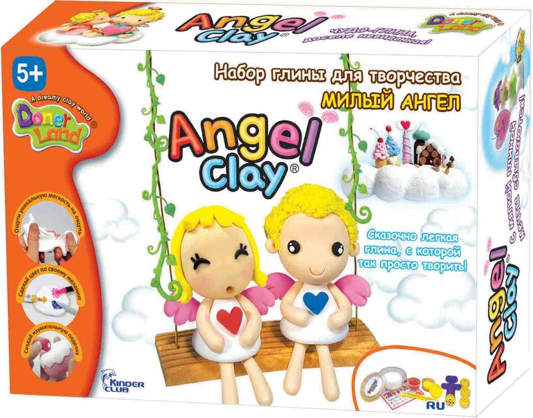 ANGEL CLAY - необыкновенно легкая и мягкая глины для лепки. Она отлично лепится, принимает любую текстуру и легко окрашивается в любой цвет. После высыхания поделка из глины ANGEL CLAY превращается в забавную игрушку! А если сбрызнуть ее водой и подождать пару часов, глина снова будет готова к использованию!