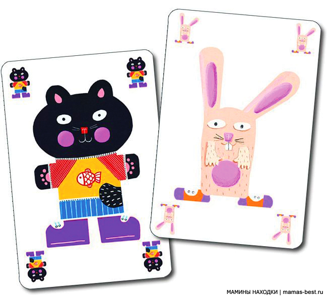 Вращайте друг за другом колесо и сочетайте формы фигурок в соответствии с рисунком на карточке. Выигрывает тот, кто последним соберет собственный рисунок.