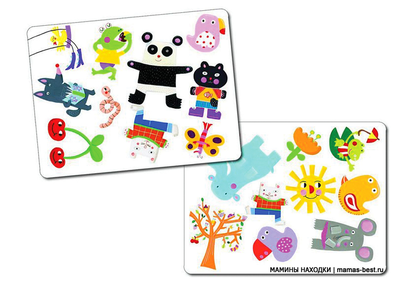 Набор состоит из шаблонов, на которые ребенок должен наложить отдельные части (деревянные фигуры). Главная задача - правильно скомпоновать детали.