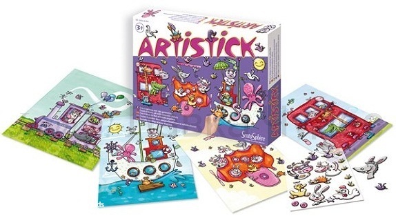 В комплекте: 4 картонные картинки, 4 листа многоразовых пластиковых наклеек.