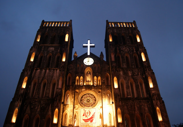 Неуловимый (для нас) Собор Святого Иосифа - самая старая христианская церковь в Ханое, наследие французских колонизаторов. Мы почему-то очень долго его искали, но не зря: он очень красивый. Местный Нотр-Дам-де-Пари. Когда мы до него дошли, там проводилась служба, и собор был полон католиков-вьетнамцев.