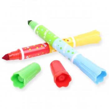Мы очень любим рисовать пальчиковыми красками, до сих пор все размазываем по листу. Кисточкой мы рисуем гуашью, раскрашиваем крупные фигуры, фрукты , овощи итд. Еще начали раскрашивать по цветам, допустим машинка, колеса одним, кабина другим итд. Учимся рисовать карандашами акварельными, они мягкие. Ну а двухсторонние фломастеры - это песня. Все покупали в Лавочке, очень довольны! Акварельные карандаши, 12 шт. Djeco, арт. 08824, арт. 08825. 369 руб 14
