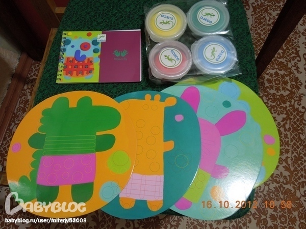 Набор для лепки и моделирования для малышей "Крокро", арт. 08913 или "Мяу", арт. 08914 Djeco. Любой набор 955 руб Суперхит!Набор для создания объёмных картин на плоскости для самых маленьких, уже от 1-1,5 лет.Масса для лепки - инновацоионный натуральный органический продукт, абсолютно безопасный и гипоаллергенный. Не прилипает, не оставляет пятен, не пачкает руки, ногти, одежду, мебель и всё вокруг. Очень яркие и сочные цвета, более того, масса легко смешивается для получения ошеломляющего количества новых цветов и оттенков).Уникальная текстура, лёгкая, воздушная, упругая и пластичная - легко моделируется, не образовывая складок и заломов, создаёт приятные тактильные ощущения, что делает процесс лепки не только интересным, но и приятным.Делаем слоника, кролика, крокодила, жирафа.Первые пластилиновые картины с использованием двух простейших фигур – палочек и кружочков.В наборе: 4 картонных фона с животными, 4 баночки массы для лепки, 1 пошаговая инструкция.Фото внизу по ссылке