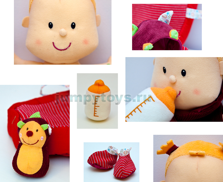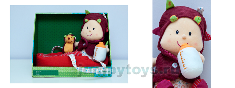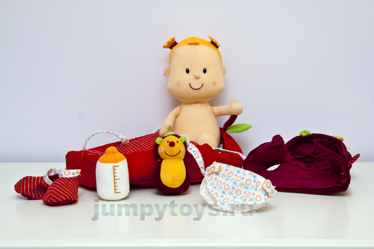 Как мама укладывает спать свою драгоценную доченьку? Умывает, причесывает, меняет подгузник, одевает пижамку, дает бутылочку с молочком и любимую игрушку. Игра в дочки-матери очень популярна и, главное, полезна для детишек. Повторить все действия за мамой очень легко с куколкой Люси. В качестве любимой игрушки выступает ежик. Весь остальной реквизит тоже прилагается: костюмчик, подгузник, пинетки, бутылочка, кроватка с одеяльцем (в виде сумочки с лямками).