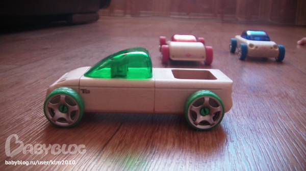 Они все разбираются на части, цветные кабинки и колеса тоже снимаются и из этих частей можно придумывать свои совершенно другие автомобили, потому что одна часть машинки точно подходит части от другой машинки. А куда вас заведет ваша фантазия? Моего сынульку надолго увлечь чем-то сложно, он только в Лего играет хорошо, но с этими машинками его было не видно, не слышно часа 2,5 как минимум, он только временами ругался на дедушку, который пришел посмотреть, что это он там собирает и хотел тоже поучаствовать. Покупать одну машинку нет никакого смысла, лучше брать 3, а еще лучше 4, 5 и т.д. И что-то мне подсказывает, что мы тремя машинками не ограничимся. А теперь много фото.