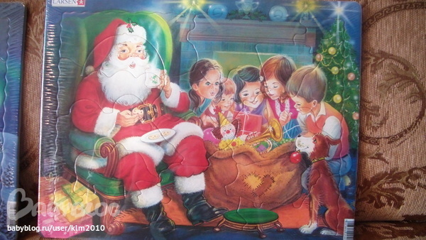 пазл Larsen "Santa With Children" этот пазл уже дома у замечательной маленькой девочке, ждет своего новогоднего часа. Здесь тоже необыновенне детали, я разглядела поросенка, чашку, чайник, словенка.
