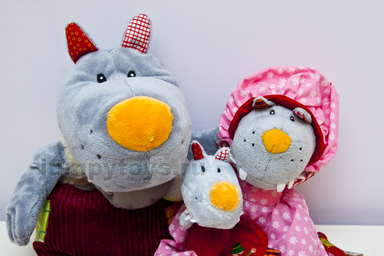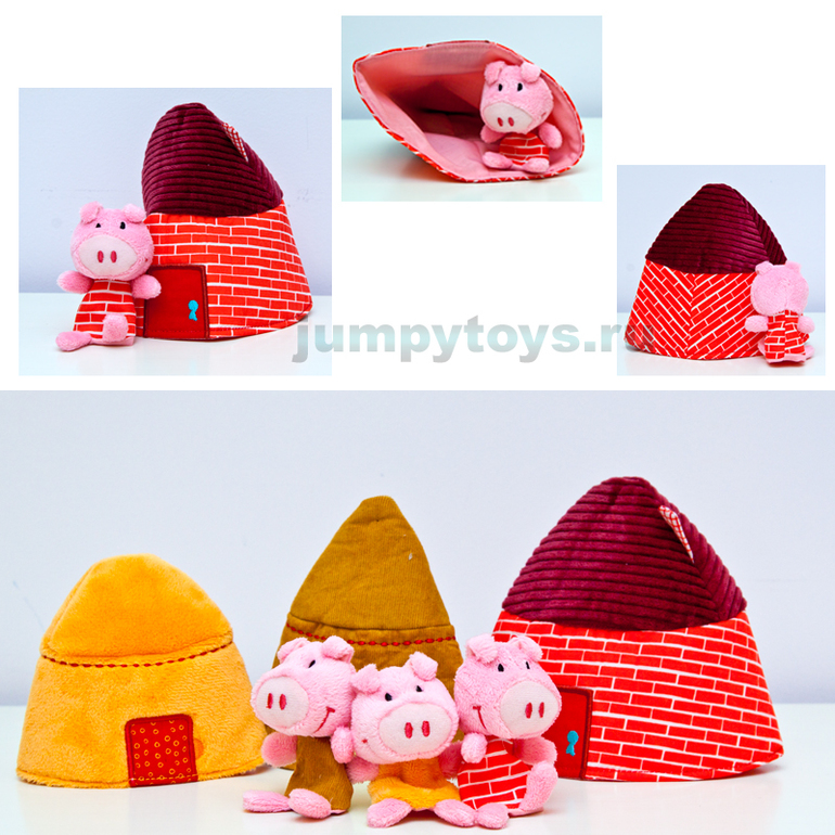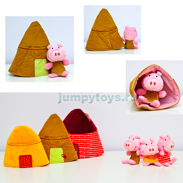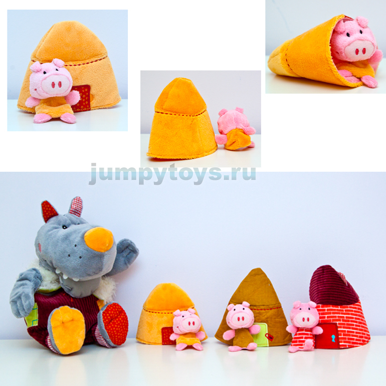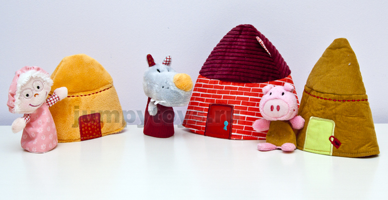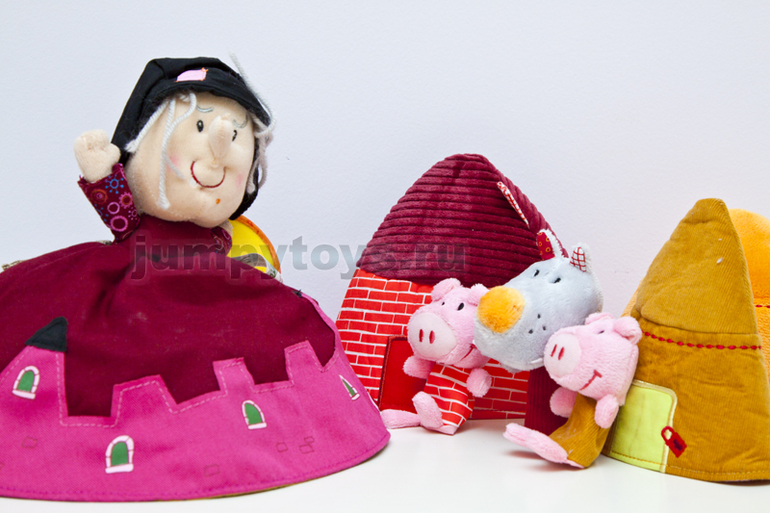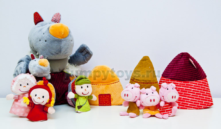 Сказку про трех поросят знают все дети. История поучительная, что ж не рассказать. Но воспринимать текст на слух это одно, а вот наглядно показать, как все могло быть на самом деле совсем другое. Как насчет спектакля? В комплекте есть все действующие лица: собственно поросята (пальчиковые игрушки), волк (кукла на руку) и даже домики. Не забудьте дать малышу поближе познакомиться с главными героями, они выполнены из разных материалов, что положительно скажется на тактильных ощущениях вашего маленького зрителя.
