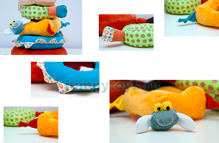 Пирамидки бывают разные. Самые маленькие могут начать с таких вот очаровательных мягких вариантов. Играть можно уже с первых месяцев жизни! Благодаря приобретенным навыкам в дальнейшем не составит труда собрать пирамиду, рассчитанную на более старший возраст.