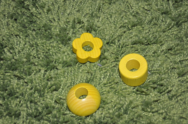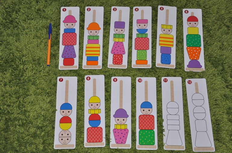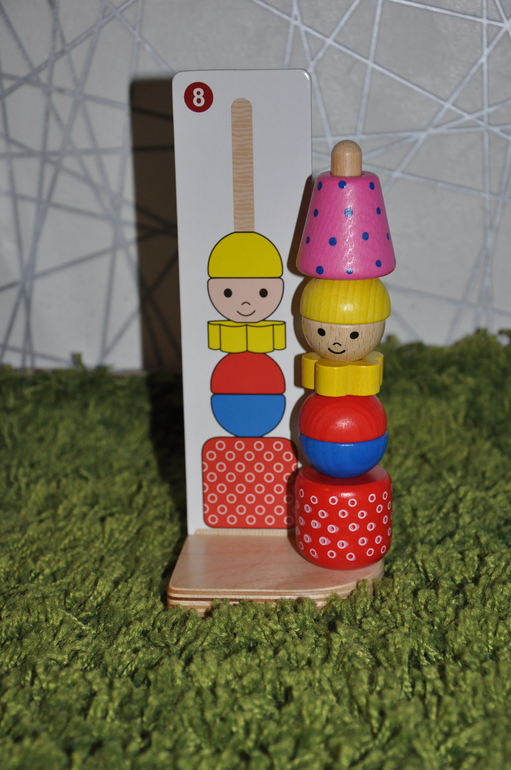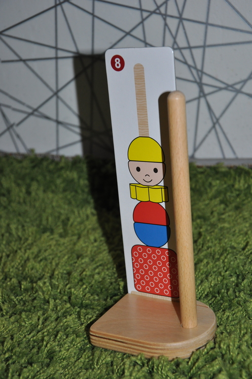 пусть собирают букет для мамы.Кстати, из отличий — в Цветах нет прорези для карточек в подставке, и ее можно только положить рядом. И еще мне показалось, что шнурок не очень удобен, если был бы деревянный стерженек на конце, нанизывать элементы было бы удобнее. Мы используем шнурок от другой шнуровки со старшим племянником. Ну а мелкий сын учится на этой пирамидке нанизувать колечки на стержень — очень удобно оказалось для маленьких ручек. Так что пирамидку можно гораздо раньше начинать использовать, без карточек конечно