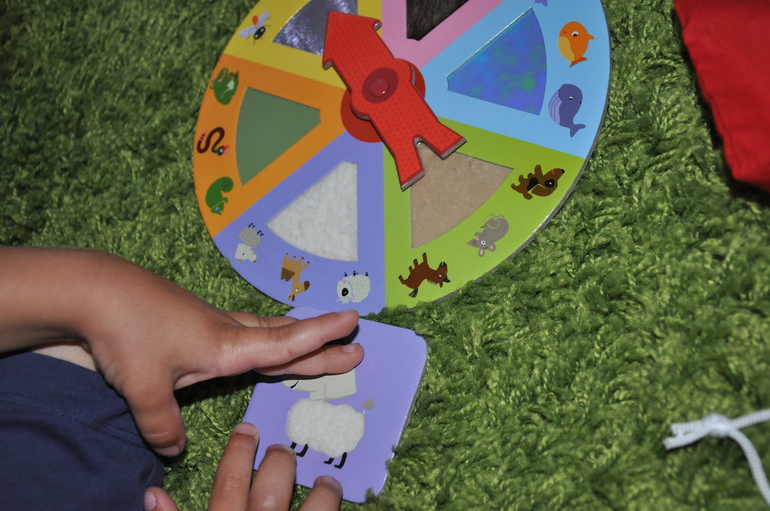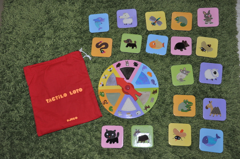 Один из вариантов тактильного лото ("Ферма") от Djeco мы показывали вот тут. Эта игра, кстати, до сих пор пользуется бешеной популярностью у Артура, а называется она у нас "Не честно! Не честно!", потому, что кое-кто частенько любит подглядывать в мешочек!))))